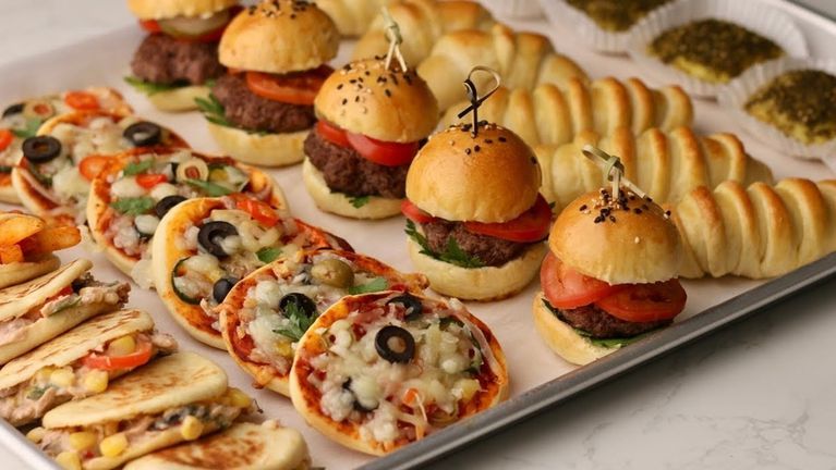 ميني بيتزا: افردي العجينة على شكل دوائر صغيرة وأضيفي الصوص والجبن والمكونات المفضلة.