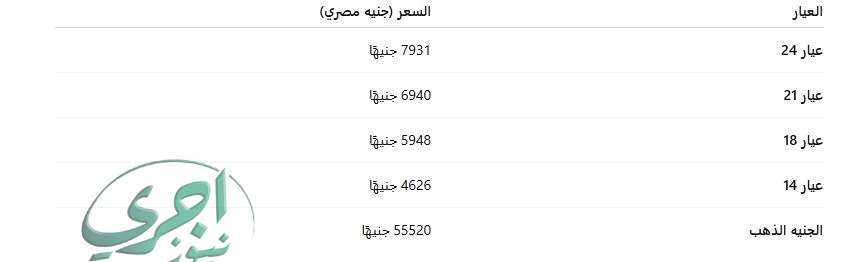 تواصل أسعار الذهب في مصر تحركاتها المرتبطة بأسواق الذهب العالمية، حيث سجل سعر الذهب عيار 24 اليوم 7931 جنيهًا، في حين وصل سعر الذهب عيار 21 إلى 6940 جنيهًا. أما سعر الذهب عيار 18 فقد بلغ 5948 جنيهًا.