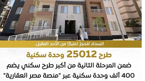 في إطار توجيهات القيادة السياسية الرامية إلى توفير وحدات سكنية لائقة تلبي احتياجات المواطنين من مختلف شرائح الدخل، أعلنت وزارة الإسكان عن بدء إجراءات حجز الوحدات السكنية عبر منصة مصر العقارية.