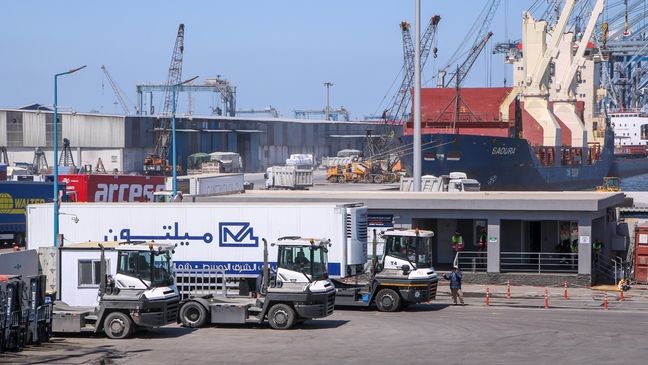 استقبل الميناء عدد 16 تريلا محملة بنحو 295 طنًا من البضائع المتنوعة تضمنت مواد غذائية ومواد طلاء ، وذلك ضمن منظومة الترانزيت غير المباشر عبر الخط الملاحي المشار إليه ، حيث تم التعامل معها وفق منظومة تشغيل متكاملة، تمهيدًا لإعادة شحنها بريا إلى ميناء سفاجا ثم استمرار إبحارها إلى كلٍ من الإمارات والكويت وسلطنة عمان وقطر.