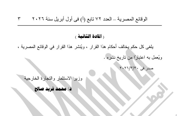 أما في المادة الثانية، فقد أشار القرار إلى إلغاء أي أحكام قد تتعارض مع نصوص هذا القرار، مع التأكيد على العمل به اعتبارًا من تاريخ نشره في الجريدة الرسمية.