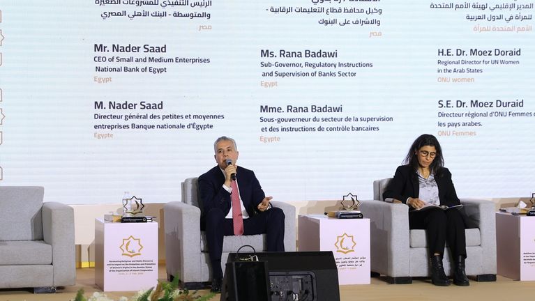 أوضح سعد أن استراتيجية الشمول المالي للبنك الأهلي المصري تقوم على ربط التمويل بالتثقيف المالي والخدمات غير المالية، لضمان تمويل مستدام يحقق تنمية حقيقية قائلا"نؤمن أن التثقيف المالي وحده لا يكفي، كما أن التمويل دون وعي لا يصنع تنمية… الربط بين الاثنين هو طريق التمكين الاقتصادي الحقيقي."