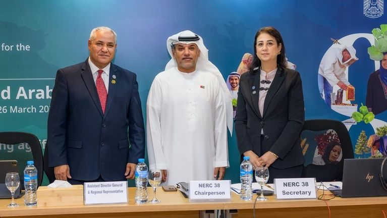 وقال سعادة محمد سعيد النعيمي، وكيل وزارة التغير المناخي والبيئة بالإمارات العربية المتحدة: "نلتقي اليوم في مرحلة تشهد الكثير من المتغيرات تتطلب منا عملاً استثنائياً لمواجهة التحديات غير المسبوقة التي تلقي بظلالها على منطقتنا وسلاسل الإمداد الغذائي، ما يعمق من تحديات المناخ وشح المياه ونقص الأراضي التي تواجه منظومتنا الزراعية، ولا يخفى على أحد ما تفرضه الأوضاع الجيوسياسية الراهنة من ضغوط إضافية تتطلب استجابة منسقة وسريعة، وهنا نُثمن الدور المحوري الذي تلعبه منظمة (الفاو) في توحيد وتوجيه الجهود الإقليمية لحماية منظومة الأمن الغذائي واستدامتها، إن دولة الإمارات العربية المتحدة واستناداً إلى رؤية قيادتها الرشيدة تؤكد التزامها الراسخ بالمضي قدماً في خطط استدامة النظم الزراعية، وستظل دائماً نموذجاً مبتكراً ورائداً في توظيف التكنولوجيا المتقدمة والابتكار لتمكين هذا القطاع الحيوي وتجاوز العقبات".