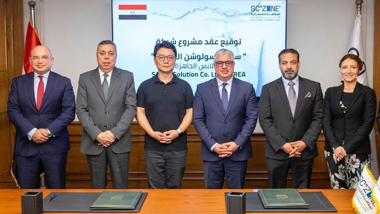 وقّع وليد جمال الدين، رئيس الهيئة العامة للمنطقة الاقتصادية لقناة السويس، بمقر الهيئة بالعاصمة الإدارية، عقد مشروع شركة "ساميل سولوشن- Samil Solution Co., Ltd" الكورية، المتخصصة في صناعة الملابس الجاهزة، وذلك لإقامة مشروع جديد بمنطقة القنطرة غرب الصناعية التابعة للهيئة، على مساحة 21 ألف متر مربع، بإجمالي استثمارات قدرها 4.49 مليون دولار أمريكي (تعادل نحو 212 مليون جنيه مصري).