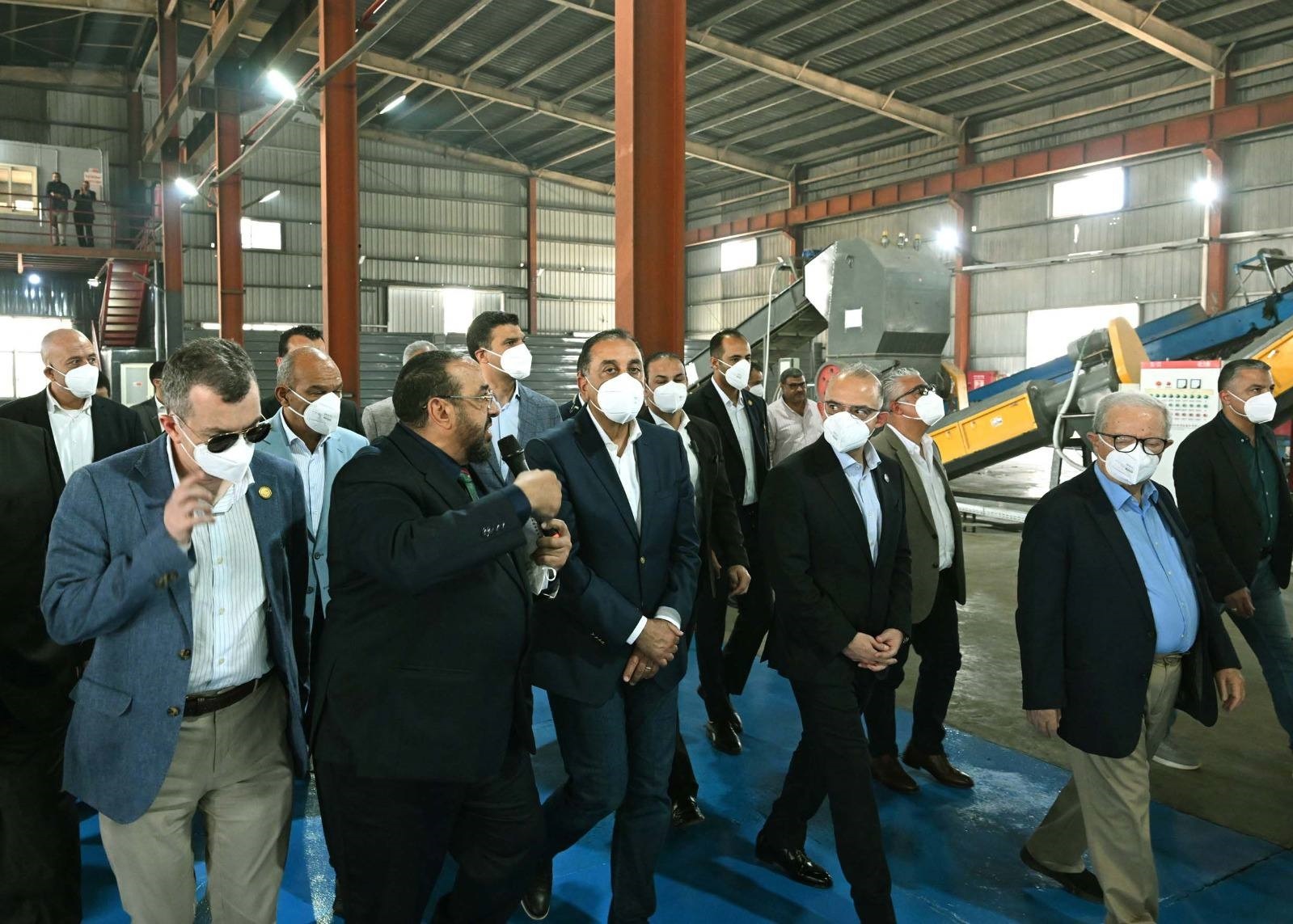 وعقب إزاحة الستار إيذاناً بالإفتتاح، تفقد رئيس الوزراء ومرافقوه المصنع، للتعرف على سير العمل في مراحل الانتاج المختلفة، إلى جانب التعرف على نماذج للمُنتج النهائي، كما استمع خلال التفقد إلى شرح من المهندس عماد العدوي، رئيس مجلس إدارة الشركة، الذي أوضح أن المشروع يُقام على مساحة 30 ألف متر مربع، باستثمارات تُقدر بنحو 5 ملايين دولار أمريكي، وبطاقة إنتاجية سنوية تبلغ 8 آلاف طن، بما يوفر نحو 50 فرصة عمل مباشرة، ويستهدف المشروع تعظيم الاستفادة من المخلفات البلاستيكية من خلال إعادة تدويرها وتحويلها إلى منتجات ذات قيمة اقتصادية، بما يسهم في دعم الصناعة المحلية بخامات مُعاد تدويرها بجودة عالية وأسعار تنافسية، فضلًا عن تقليل التلوث البيئي وإيجاد فرص عمل في مجالات الجمع والفرز والتصنيع، مع دعم توجه الدولة نحو زيادة الصادرات وتوفير العملة الصعبة.