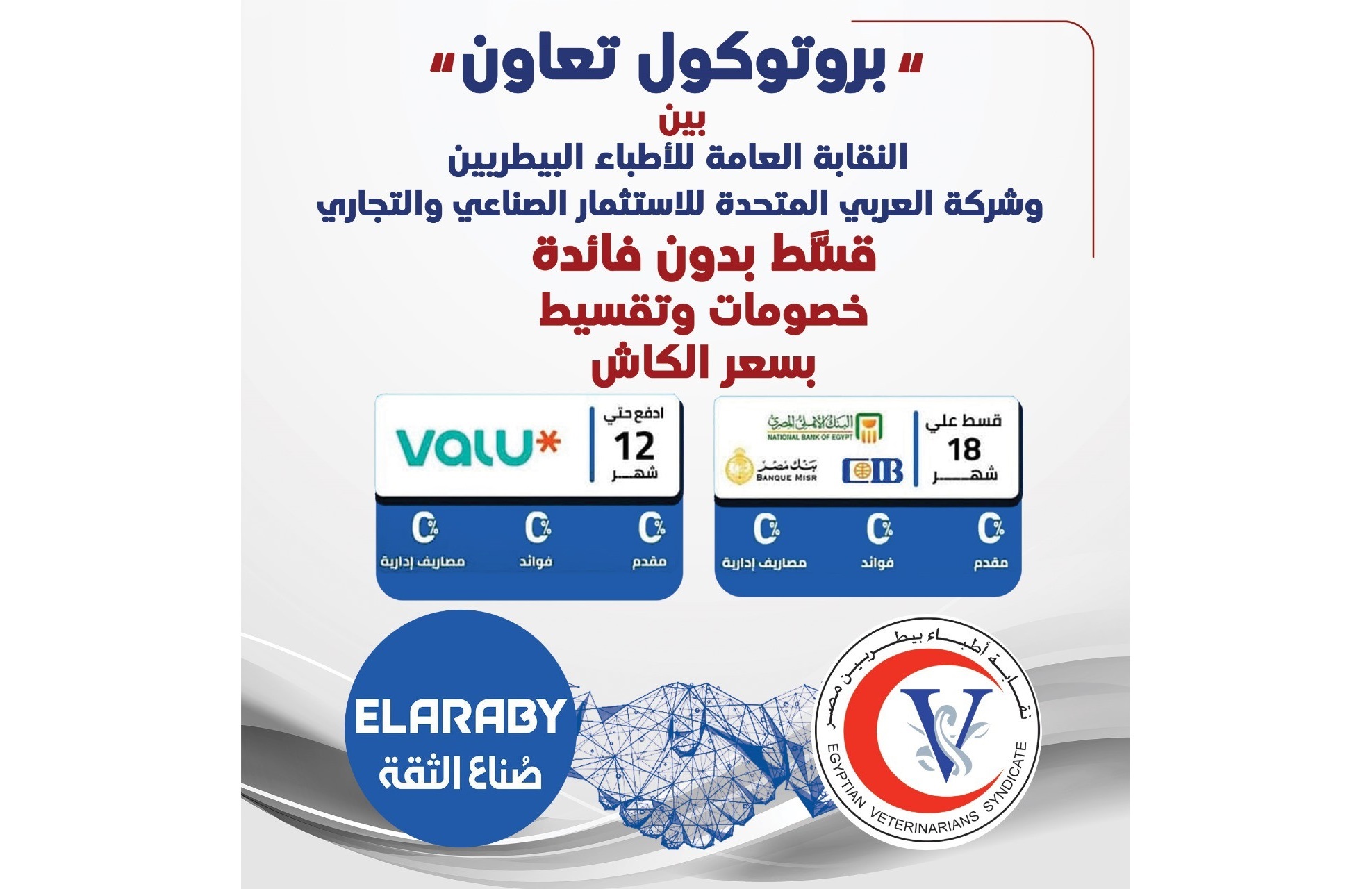 أعلنت النقابة العامة للأطباء البيطريين عن توقيع بروتوكول تعاون جديد مع شركة العربي للتجارة والصناعة، في خطوة تهدف إلى تقديم مزايا وخدمات حصرية لأعضاء النقابة الكرام، تماشياً مع حرص النقابة الدائم على تلبية احتياجات أعضائها ودعمهم في الحصول على منتجات عالية الجودة بأسعار تنافسية.