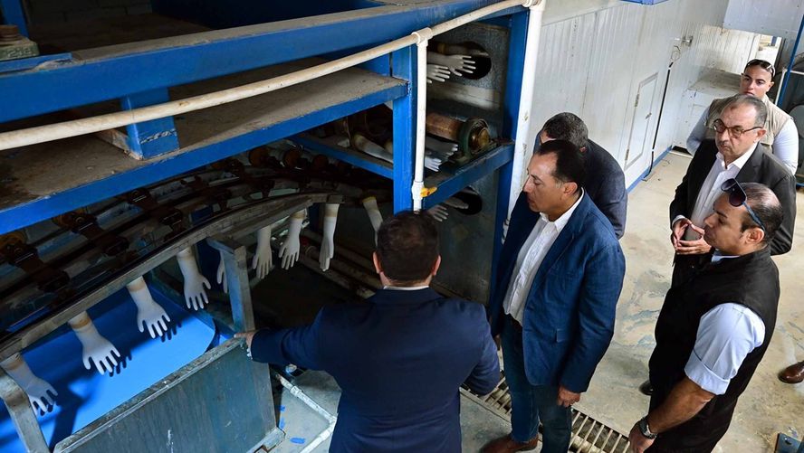 في أثناء جولته اليوم، افتتح الدكتور مصطفى مدبولي، رئيس مجلس الوزراء، ومرافقوه، مصنع "سيناي للمستلزمات الطبية" الذي يختص بتصنيع القفازات الطبية من خامة (النتريل)، بمنطقة السخنة الصناعية المتكاملة، التابعة للهيئة العامة للمنطقة الاقتصادية لقناة السويس، وذلك في إطار جهود الدولة المصرية لتوطين الصناعات الاستراتيجية ودعم سلاسل القيمة المرتبطة بقطاع المستلزمات الطبية.