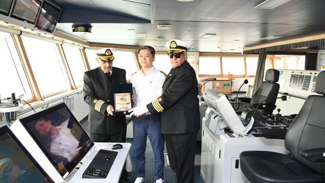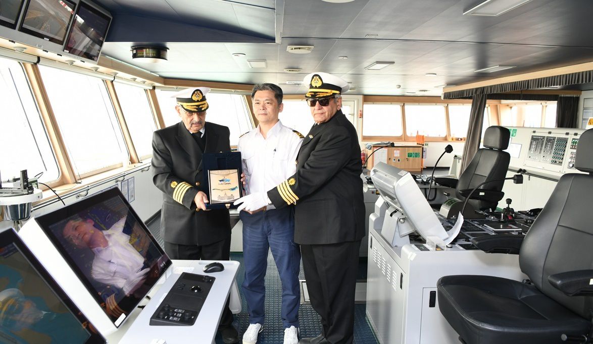 كما تم تطبيق البروتوكول الخاص بالسفن العابرة للمرة الأولى، حيث صعد على متن السفينة كل من: