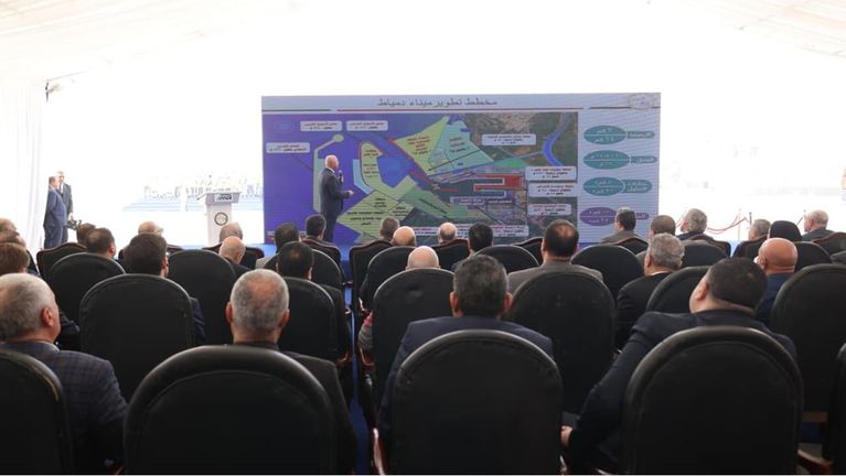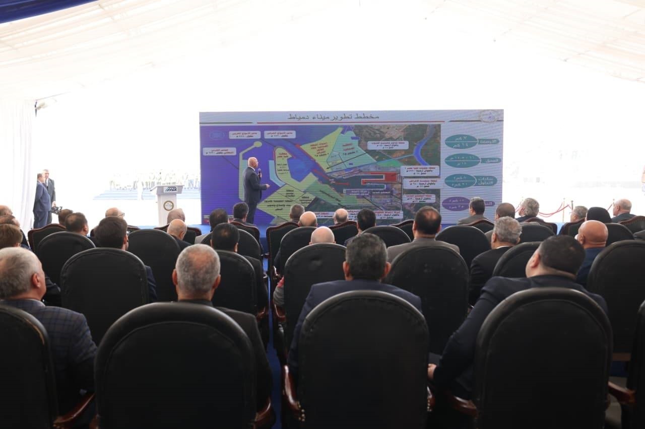 و نؤكد علي أن محطة « تحيا مصر 1 » ليست مجرد محطة حاويات جديدة ، بل هي رسالة واضحة بأن مصر تمضي بخطى ثابتة نحو ترسيخ مكانتها كمركز إقليمي للنقل واللوجستيات وتجارة الترانزيت ، مستندة إلى رؤية استراتيجية ، وشراكات دولية قوية ، وبنية تحتية حديثة تليق بمكانة الدولة المصرية ، وإرادة سياسية قوية من فخامة السيد الرئيس عبد الفتاح السيسي رئيس الجمهورية الذي وجه بتطوير هذا الميناء ، واسمحوا لي أن أستعرض معكم خريطة توضح مخطط تطوير ميناء دمياط وما تم تنفيذه حتى الآن مستعرضا مخطط تطوير ميناء دمياط وزيادة الأرصفة من 7كم الي على 14كم وزيادة الأعماق من 11-14.5م الي 18م وزيادة ساحات التداول من 8كم الي 21كم والمساحة من 12كم الي 35كم. وعدد القاطرات من ١٢ إلى ١٦ قاطرة مستعرضا محطات تحيا مصر 1 ومحطة تداول الحبوب وحواجز الأمواج الغربي والشرقي ومنطقة مصنع الكابلات والمنطقة اللوجيستية الصناعية والمنطقة المخصصة لتخريد وبناء وصيانة السفن مشيرا إلي أن شركة موانئ مصر البحرية تخطو خطوات جادة نحو إدارة وتشغيل عدد المحطات والموانئ المصرية وان وزارة النقل تدعمها بشكل كبير لتصبح في مصاف المشغلين العالميين لافتا الى ان هذه الشركة مملوكة لكل من هيئة ميناء دمياط وهيئة قناة السويس والشركة القابضة للنقل البحرى والبرى