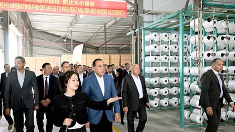وحرص رئيس الوزراء على تفقد مكونات مجمع "شين جين"، مستمعًا في أثناء ذلك إلى شرح من جاو ديو، مديرة مجمع "شين جين"، والتي أوضحت أن المشروع يمتد على مساحة 20 ألف متر مربع، باستثمارات تبلغ 20 مليون دولار، وبطاقة إنتاجية تصل إلى 60 مليون متر أقمشة و10 آلاف طن خيوط سنويًا، منوهة إلى أنه يتم تصدير نسبة 70% من الإنتاج.