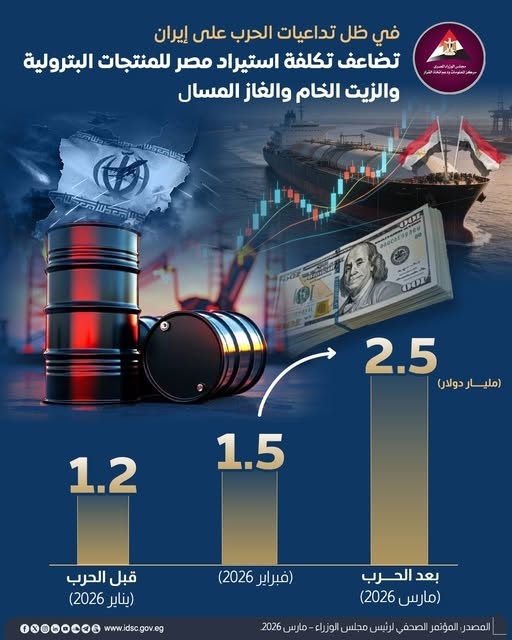 بحسب المؤتمر الصحفي الذي عقده رئيس مجلس الوزراء المصري في مارس 2026، فقد أظهرت الأرقام أن تكلفة استيراد هذه المنتجات البترولية قد تضاعفت بشكل ملحوظ: