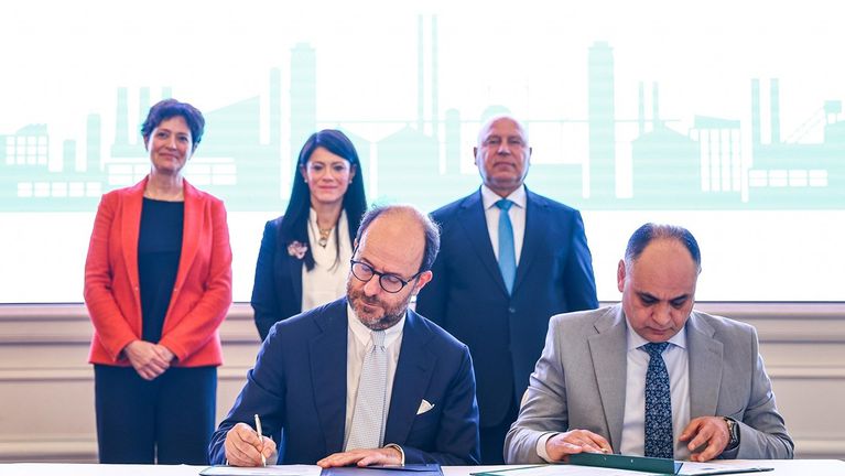وقّعت وزارتا التخطيط والتنمية الاقتصادية والتعاون الدولي، والبيئة، اتفاق تمويل ميسر ومنحة مع الوكالة الفرنسية للتنمية، وبنك الاستثمار الأوروبي، بقيمة 53.8 مليون يورو (2.9 مليار جنيه) في إطار جهود تنفيذ برنامج الصناعات الخضراء المستدامة GSI، لدعم التحول الأخضر بقطاع الصناعة وخفض الانبعاثات وتعزيز تنافسية القطاع، وذلك خلال الفعالية رفيعة المستوى التي نظمتها الوزارتان اليوم لتعريف القطاع الخاص وممثلي قطاع الصناعة ببرنامج الصناعات الخضراء المستدامة لدعم الصناعة المصرية، وبمشاركة ممثلي المؤسسات الدولية، وممثلي البنك الأهلي المصري.