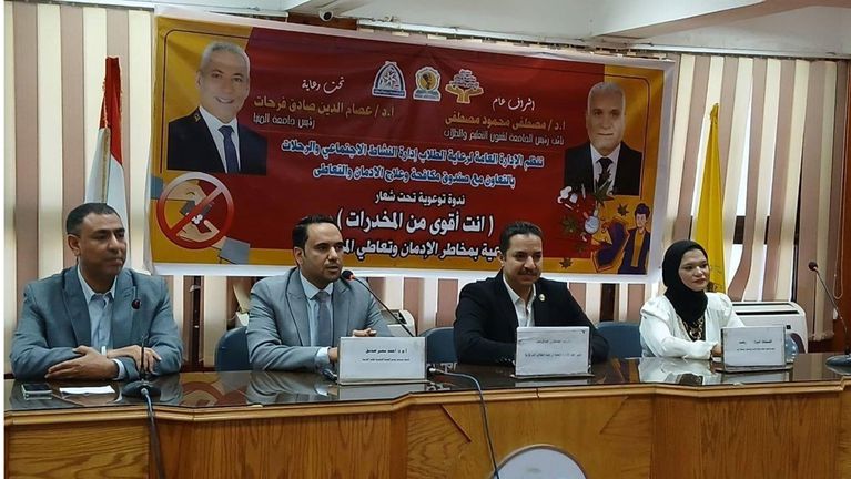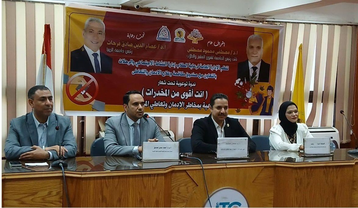 تنفيذًا لتوجيهات اللواء عماد كدواني، محافظ المنيا، وبالتعاون مع صندوق مكافحة وعلاج الإدمان والتعاطي، تم عقد لقاء توعوي موسع تحت شعار “انت أقوى من المخدرات”، حول مخاطر الإدمان استهدف طلاب 6 كليات بجامعة المنيا، وذلك في إطار الخطة القومية التي ينفذها صندوق مكافحة وعلاج الإدمان والتعاطي لخلق بيئة مجتمعية آمنة وخالية من الإدمان، وتعزيز قيم الوعي والمسؤولية بين الشباب.