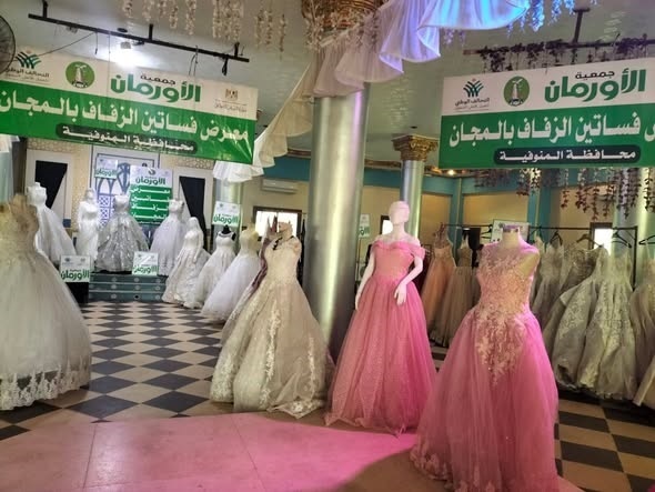نظمت مديرية التضامن الاجتماعي بالمنوفية بالتعاون مع جمعية الأورمان معرضاًبقرية العراقية بمركز الشهداء، لتوزيع فساتين الزفاف على 235 عروسة يتيمة من قرى مراكز الشهداء ومنوف وشبين الكوم تأكيدًا على رعاية الدولة لهذه الفئة ودعمها في بناء حياة زوجية كريمة.