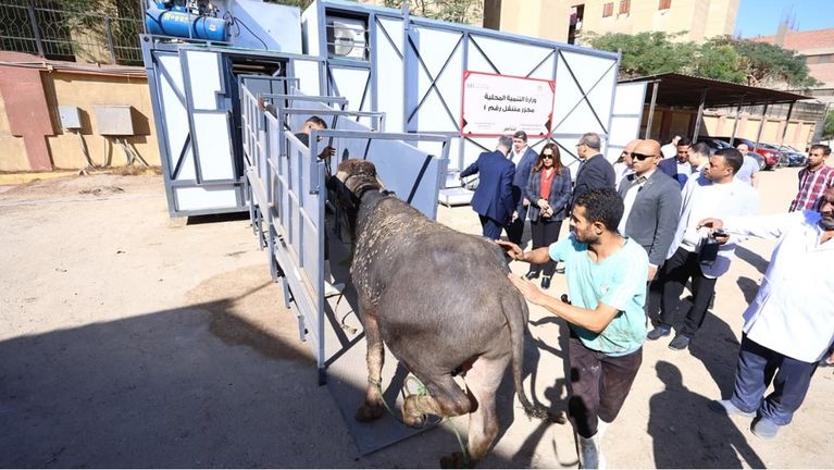 افتتحت الدكتورة منال عوض وزيرة التنمية المحلية والقائم بأعمال وزير البيئة ، صباح اليوم المجزر المتنقل الأول والذى يتم تنفيذه لأول مرة في مصر وتشرف الوزارة علي تصميمه وتمويله ضمن عقد توريد 2 مجزر متنقل مكيف ومجهز بجميع مشتملاته بين وزارة التنمية المحلية وشركة ( بان) للمقاولات العامة والاستثمار التجاري ، وذلك بناءً علي توجيهات السيد الدكتور مصطفي مدبولي رئيس مجلس الوزراء لوزارة التنمية المحلية بتجهيز عدد ٢ مجزر متنقل مكيف لذبح الأبقار والماشية التي توجد بمناطق لا يوجد بها مجازر وكذا المناطق النائية والحدودية للتعامل مع الماشية التي يتم استيرادها من الخارج لتوفير لحوم آمنة لتلبية احتياجات المواطنين .