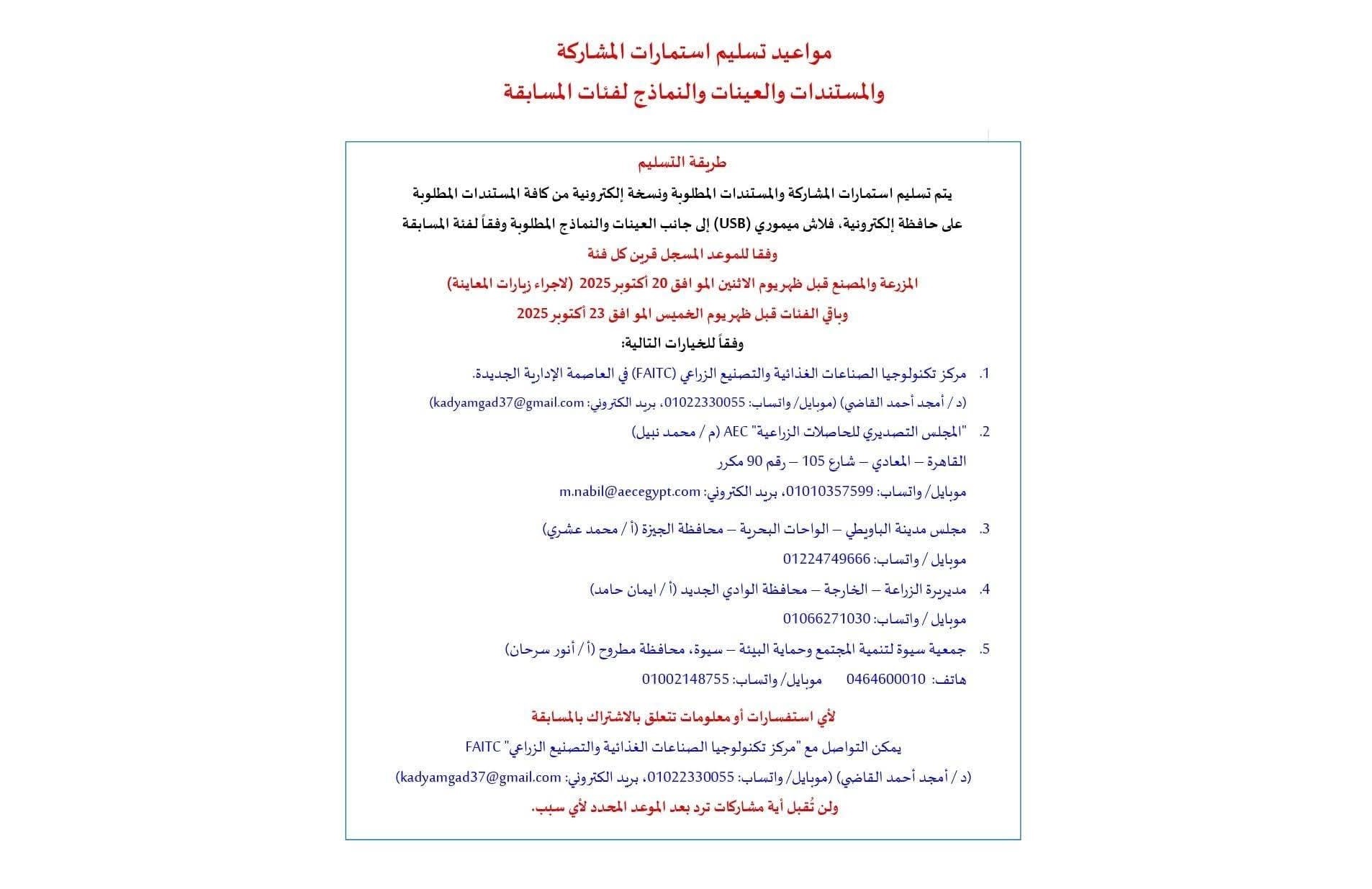 أعلنت محافظة الجيزة عن فتح باب المشاركة في مسابقة التمور المصرية 2025، والتي تُقام ضمن فعاليات المهرجان الدولي الثامن للتمور المصرية، خلال الفترة من 8 إلى 10 نوفمبر 2025 بمدينة الواحات البحرية، وذلك تحت رعاية رئيس الجمهورية، وبالتعاون مع جائزة خليفة الدولية لنخيل التمر والابتكار الزراعي في دولة الإمارات العربية المتحدة.