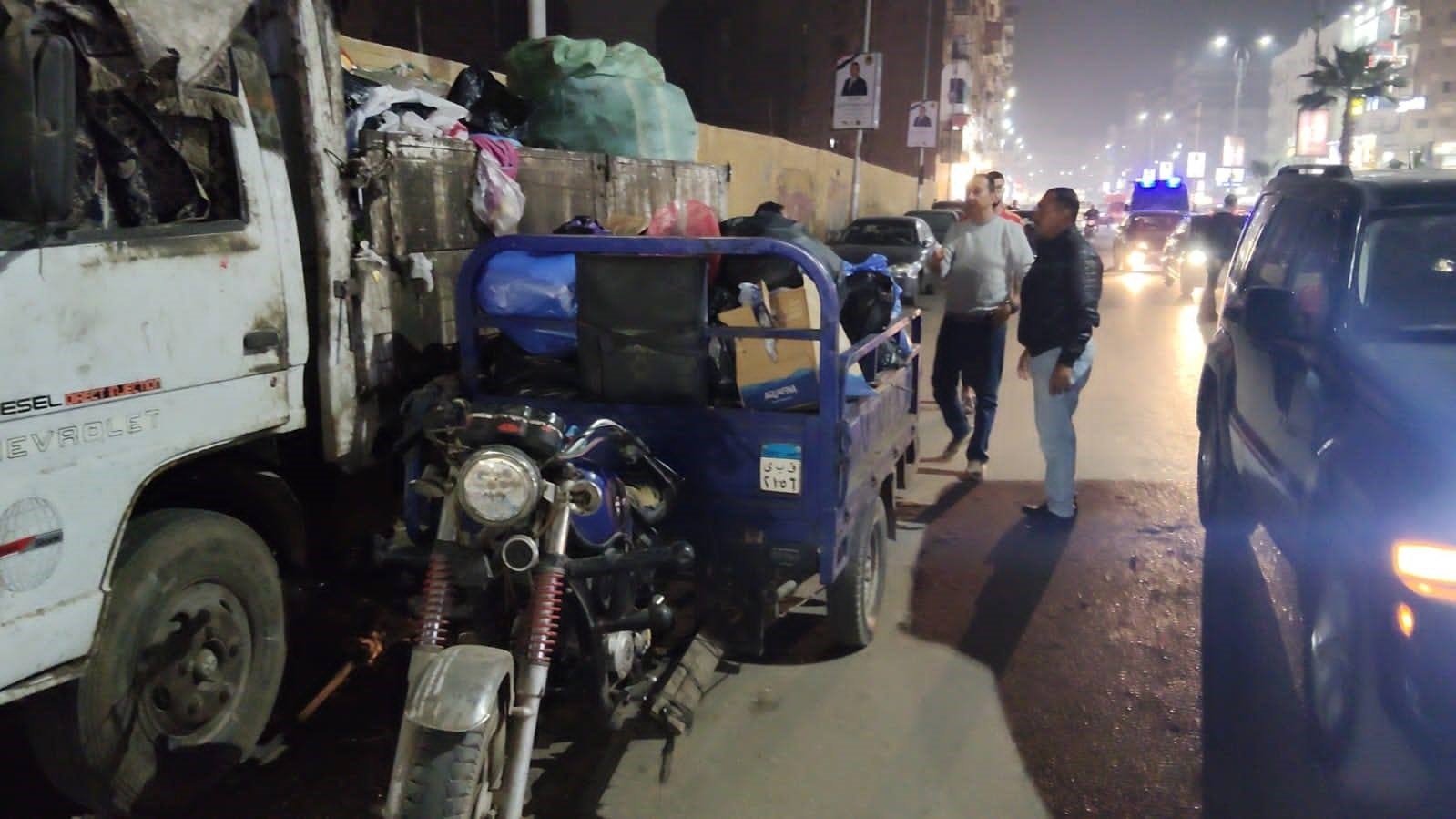3 تروسيكلات تعمل بطريقة مخالفة،4 عربات كارو تقوم بفرز القمامة بشكل عشوائي،