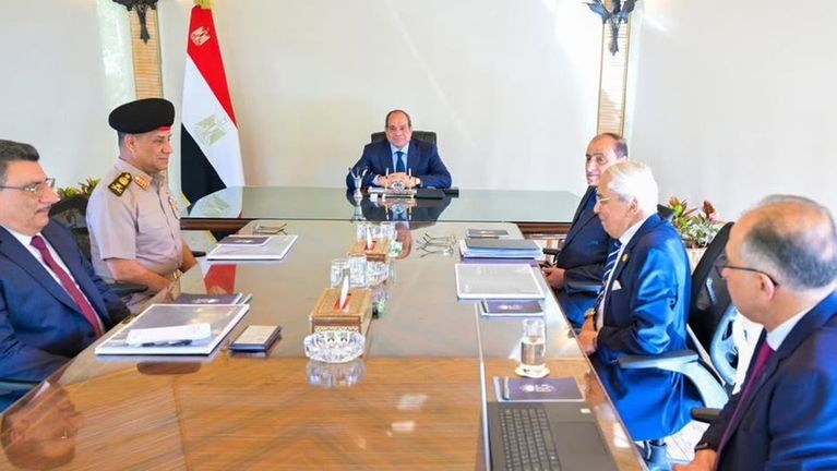 اجتمع الرئيس عبد الفتاح السيسي، اليوم، مع الفريق أشرف سالم زاهر القائد العام للقوات المسلحة وزير الدفاع والإنتاج الحربي، واللواء أمير سيد أحمد مستشار رئيس الجمهورية للتخطيط العمراني، والفريق أحمد الشاذلي مستشار رئيس الجمهورية للشئون المالية، واللواء محمود رزق رئيس مجلس إدارة الجهاز الوطني للإدارة والاستثمار، والدكتور أحمد شلبي الرئيس التنفيذي لشركة تطوير مصر.