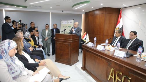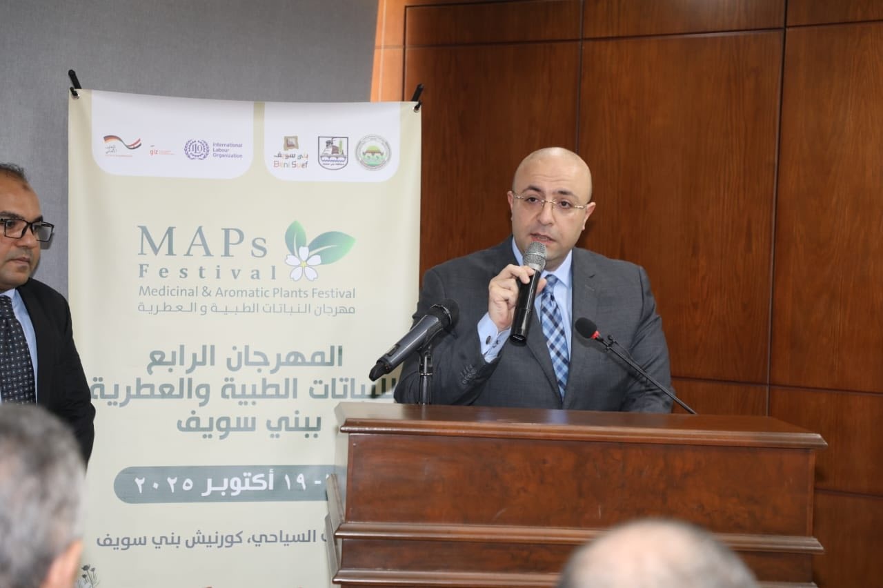 جاء ذلك في مستهل فعاليات المؤتمر الصحفي الذي عقده محافظ بني سويف " اليوم" بمقر المجلس التصديري للحاصلات الزراعية بالقاهرة ، وفي حضور : السيد "بلال حبش" نائب محافظ بني سويف، الدكتور عبد الحميد الدمرداش رئيس المجلس التصديري للحاصلات الزراعية_عضو مجلس النواب_ السيد: ستيفن شميد مدير مشروع الابتكار الزراعي بالوكالة الألمانية للتعاون الدولي، المهندس طارق أبو بكر رئيس لجنة النباتات الطبية والعطرية بالمجلس التصديري"رئيس اللجنة التنظيمية" ،الأستاذة مروة صلاح مدير مشروعات مكافحة عمل الأطفال بمنظمة العمل الدولية بمصر ،الدكتور محمد جبر معاون المحافظ، الدكتور علاء سعيد مدير وحدة التنمية الاقتصادية ، الأستاذة شيرين حسين المكتب الفني بالديوان العام ، المهندس مصطفى صبحي ، الأستاذ محمد طه المكتب الفني.