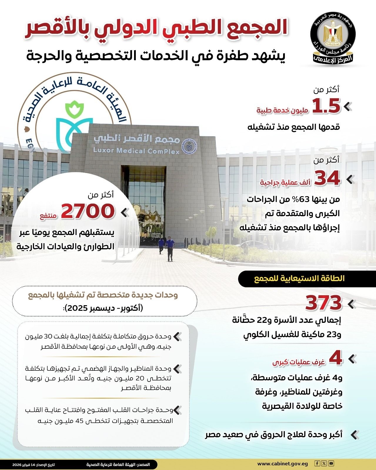 المجمع يواصل تحقيق تطور كبير في قدرته على تقديم الخدمات التخصصية والحرجة، ويُعتبر نقطة محورية في تحسين الرعاية الصحية في الأقصر والمحافظات المجاورة.