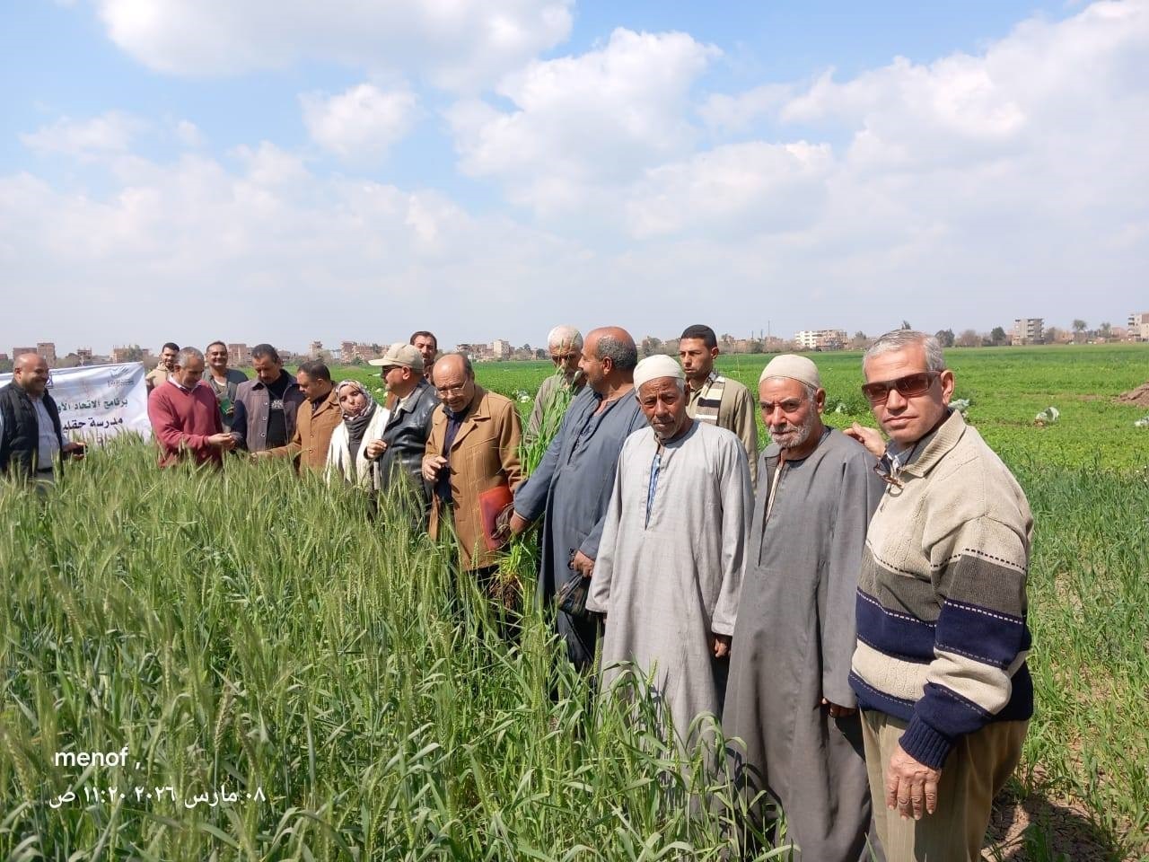 في إطار توجيهات وزير الزراعة واستصلاح الأراضي علاء فاروق، وبرعاية عمرو الغريب محافظ المنوفية، وبمتابعة محمد عزت عجور وكيل وزارة الزراعة بالمنوفية، تواصل مديرية الزراعة بالمحافظة تنفيذ المدارس الحقلية لمحصول القمح ضمن مشروع "كافي" بالتعاون مع الاتحاد الأوروبي، بهدف دعم المزارعين وتطبيق أحدث أساليب الزراعة المستدامة.