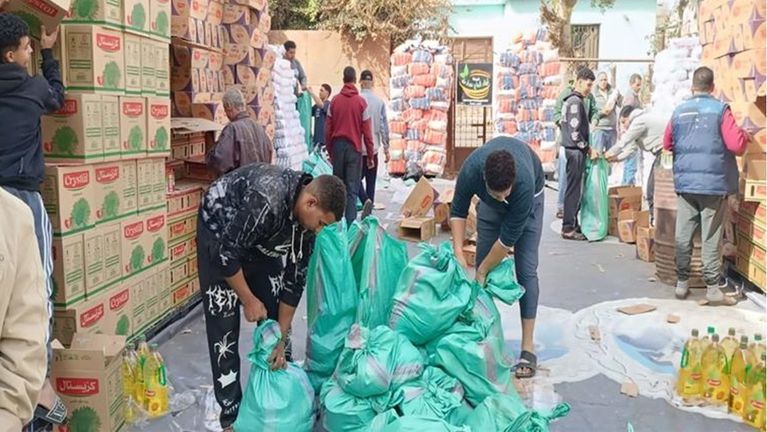 وأوضح أن تكلفة المواد الغذائية وأعمال التعبئة هذا العام بلغت نحو مليون وستمائة ألف جنيه، حيث تصل قيمة الشيكارة الواحدة إلى 900 جنيه تقريبًا. وأضاف أن الشيكارة تضم سلعًا أساسية تشمل 5 كيلو أرز، و5 كيلو سكر، و10 أكياس مكرونة، وزجاجة زيت 3 لترات، وصفيحة سمنة 2 كيلو، وربع كيلو شاي.