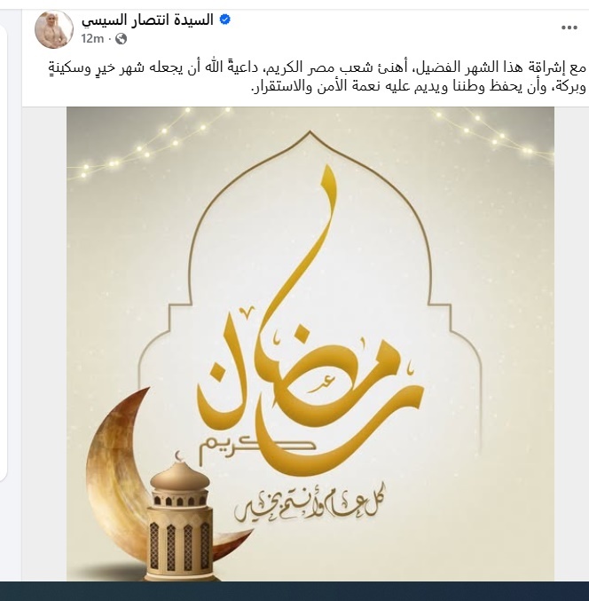 وغردت عبر حسابها الرسمي: "مع إشراقة هذا الشهر الفضيل، أهنئ شعب مصر الكريم، داعيةً الله أن يكون شهر خير وسكينة وبركة، وأن يحفظ وطننا ويديم عليه نعمة الأمن والاستقرار".