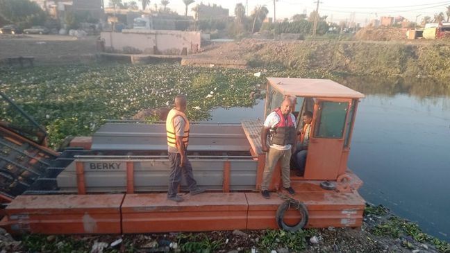 تشغيل المعدة المائية الألمانية لتطهير المجاري المائية وتحويل ورد النيل إلى أعلاف بأسيوط