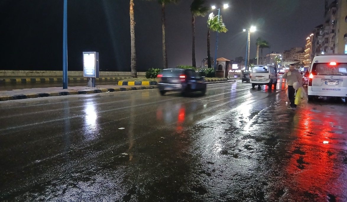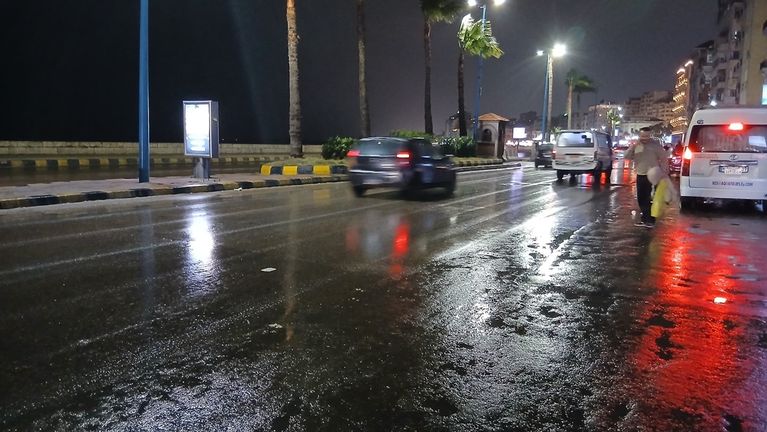 شهدت محافظة الإسكندرية ليلة الأحد 15 مارس 2026، أمطاراً غزيرة مصحوبة بانخفاض ملموس في درجات الحرارة ونشاط في حركة الرياح، مما أدى إلى أجواء باردة ورطبة خلال الليل.