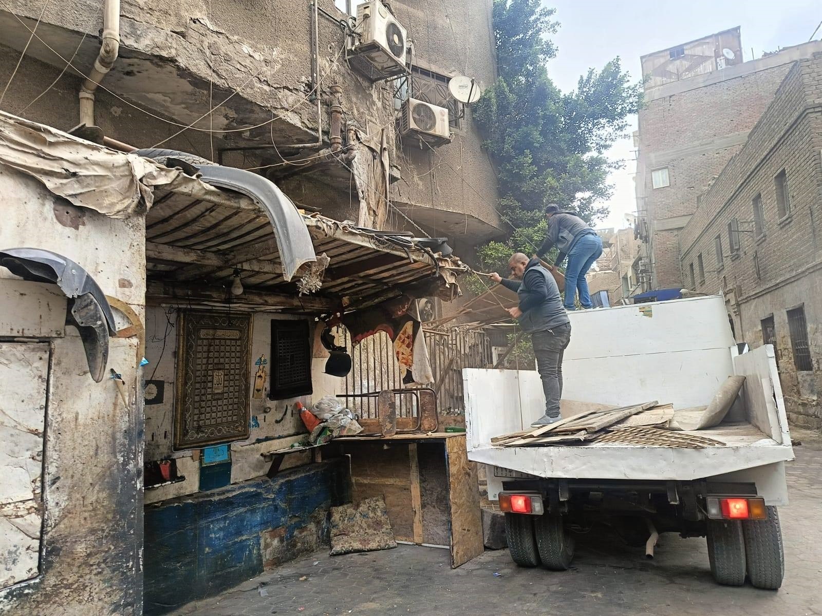 إزالة أكشاك مخالفة وفتح الطريق