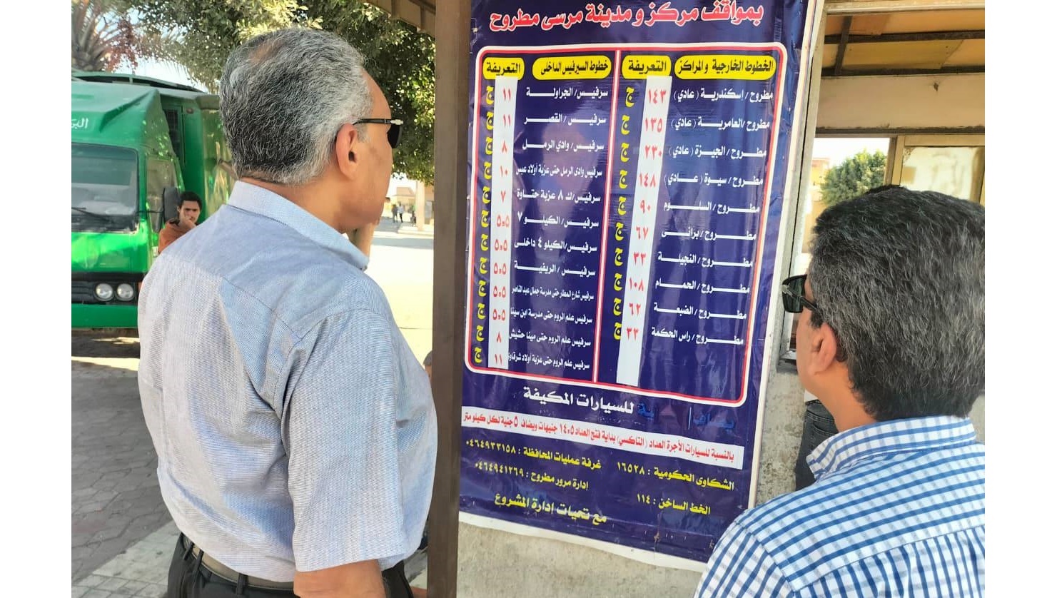 تنفيذاً لتوجيهات اللواء خالد شعيب، محافظ مطروح، بمتابعة مواقف وسيارات الأجرة وضمان الالتزام بالتعريفة الجديدة، قام اللواء مجدي الوصيف، السكرتير العام للمحافظة، يرافقه اللواء محمد صحصاح، رئيس مدينة مرسى مطروح، والعميد طارق عرفان، المدير التنفيذي لمشروع المواقف الموحدة، بجولة تفقدية شملت عدد من المواقف الداخلية بمدينة مرسى مطروح.