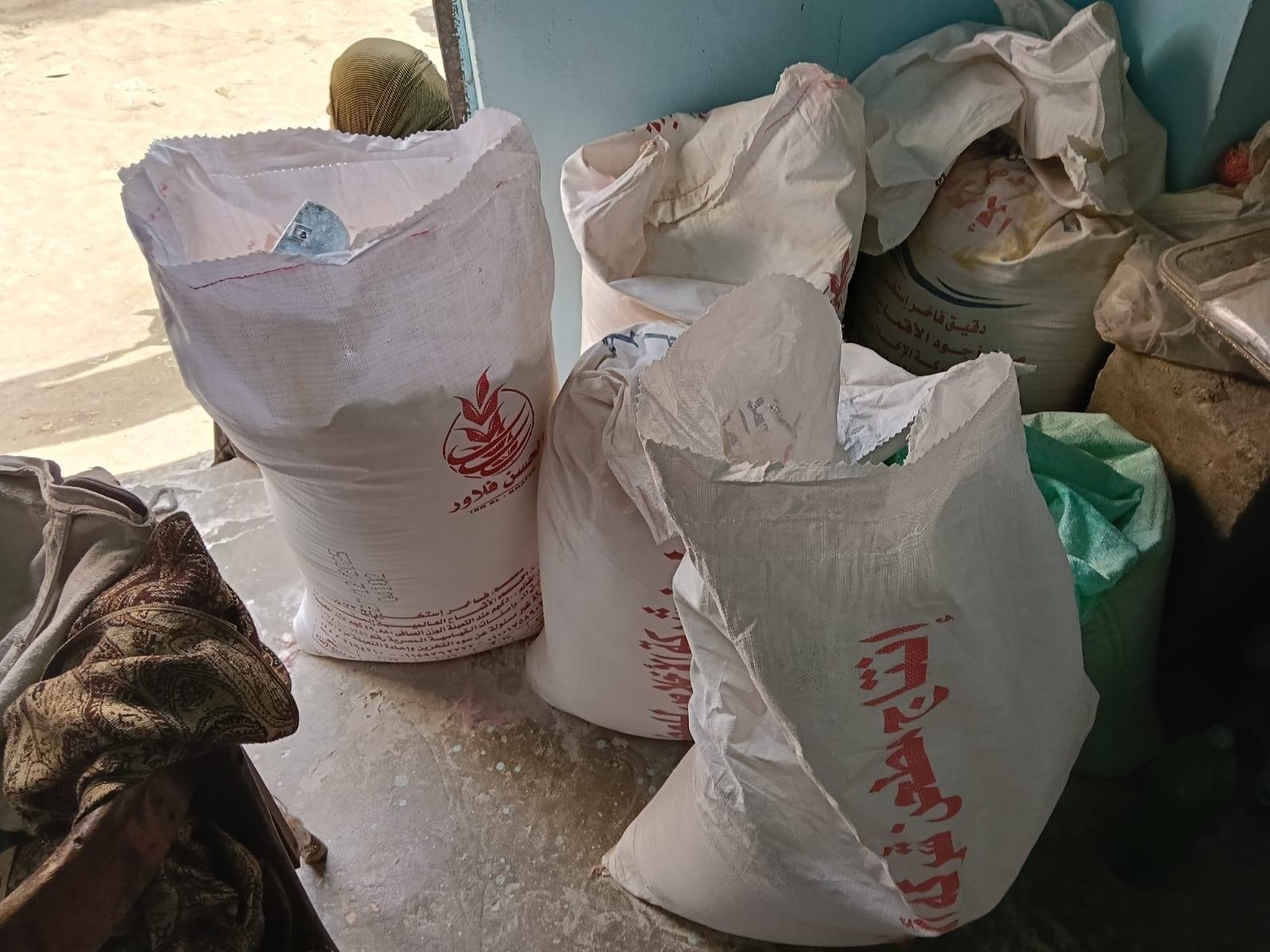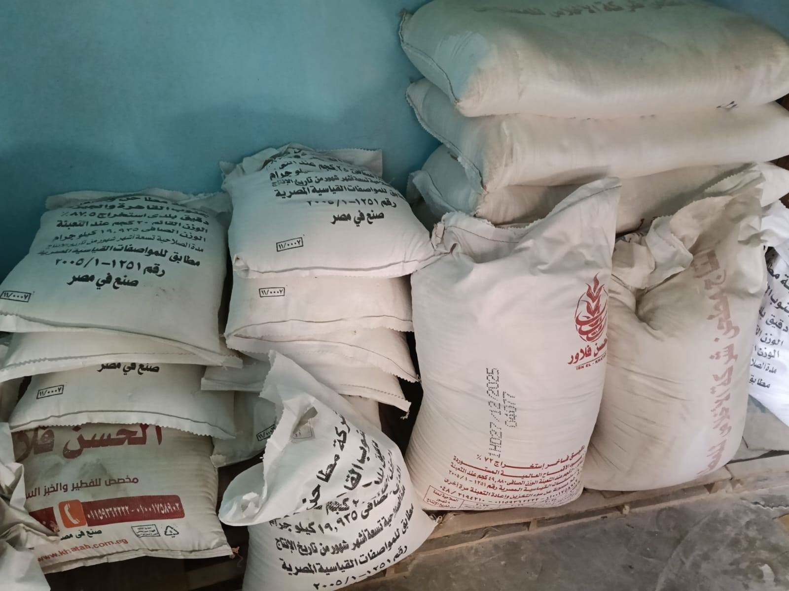 8 جوال دقيق بلدي مدعم مخصص لمستودعات الدقيق، زنة الجوال 20 كيلو، وتم التحفظ عليهم.