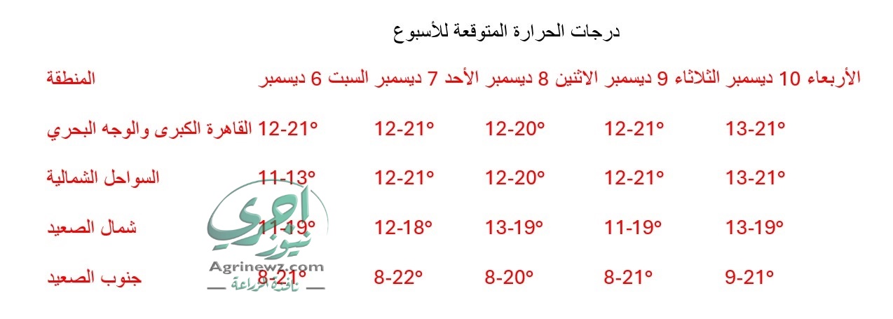 الصعيد خلال الفترة من السبت 6 ديسمبر وحتى الأربعاء 10 ديسمبر 2025، مع نشاط
