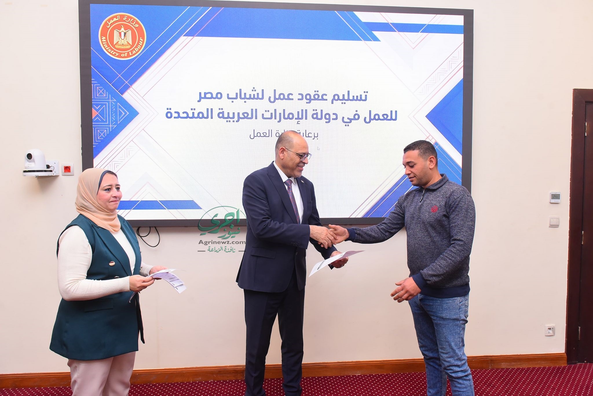 قام وزير العمل محمد جبران، صباح اليوم، بمقر الوزارة بالعاصمة الجديدة، بتسليم 25 عقد عمل جديد لعدد من الشباب الذين اجتازوا اختبارات التشغيل المقدّمة من الوزارة للعمل في مهن النجارة والحدادة والبناء بدولة الإمارات العربية المتحدة.