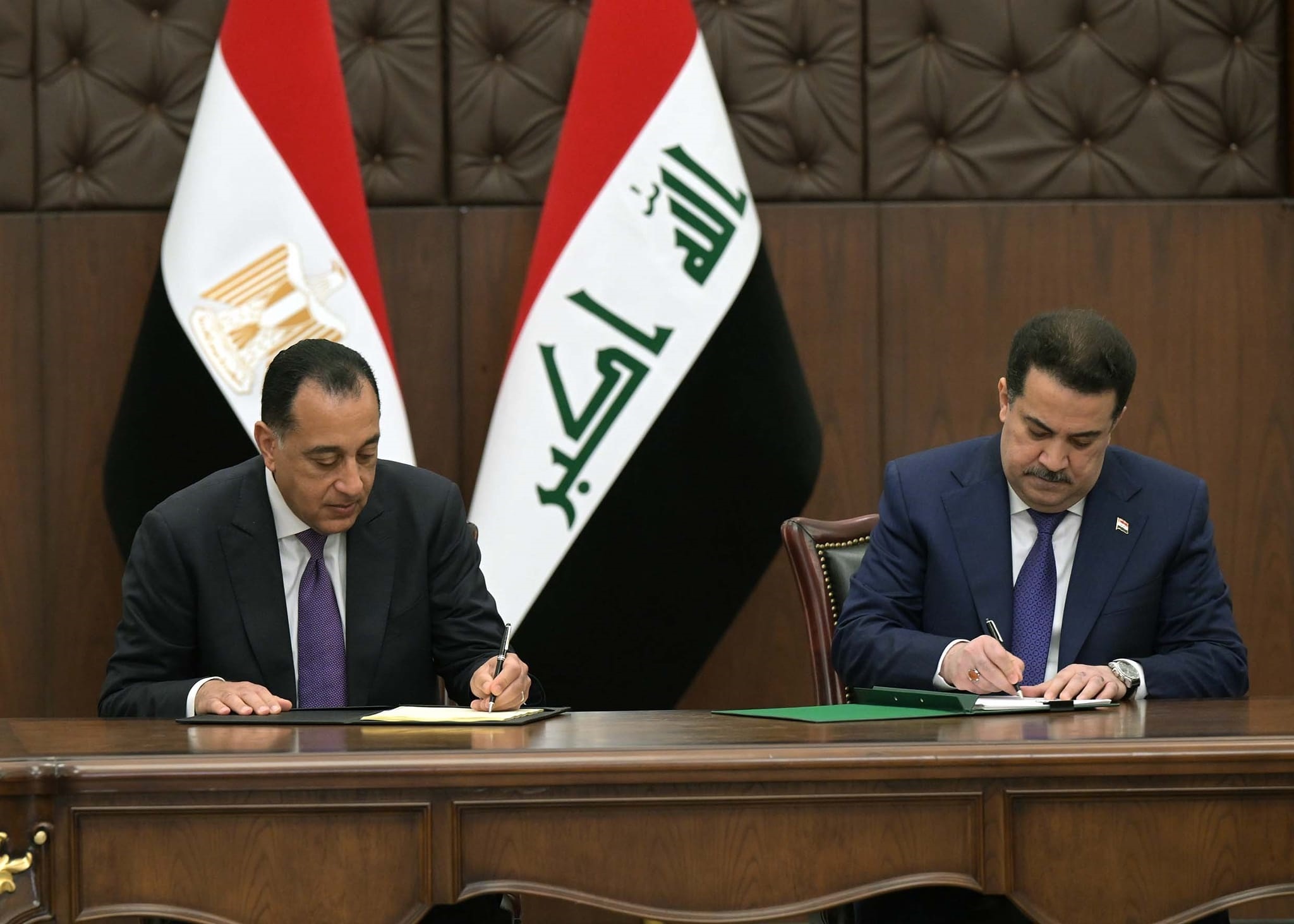 شهد الدكتور مصطفى مدبولي، رئيس مجلس الوزراء، والسيد محمد شياع السوداني، رئيس وزراء العراق، مراسم التوقيع على عدد من وثائق التعاون بين جمهورية مصر العربية ودولة العراق، وذلك عقب انعقاد جلسة المباحثات الموسّعة للجنة العليا المصرية العراقية المشتركة.