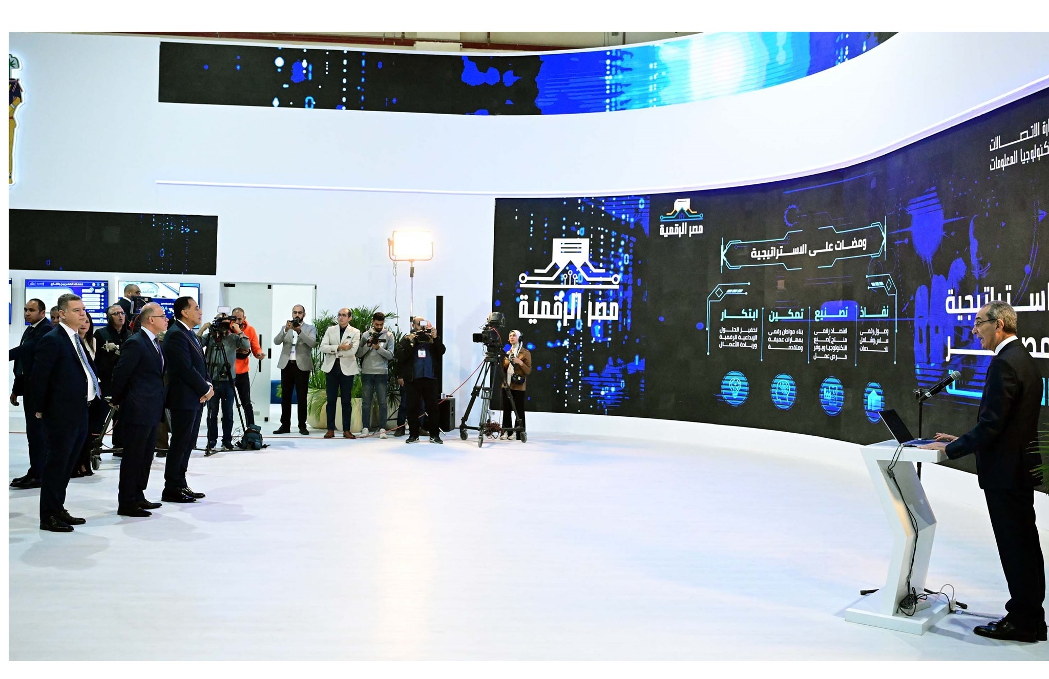 استمع الدكتور مصطفى مدبولي، رئيس مجلس الوزراء، لعرض تقديمي حول مشروعات وزارة الاتصالات وتكنولوجيا المعلومات في مجال التحول الرقمي، وذلك عقب افتتاحه النسخة التاسعة والعشرين لمعرض ومؤتمر القاهرة الدولي للتكنولوجيا بالشرق الأوسط وأفريقيا Cairo ICT، الذي يُعقد تحت رعاية الوزارة وبشعار (AI Everywhere .. الذكاء الاصطناعي في كل مكان).