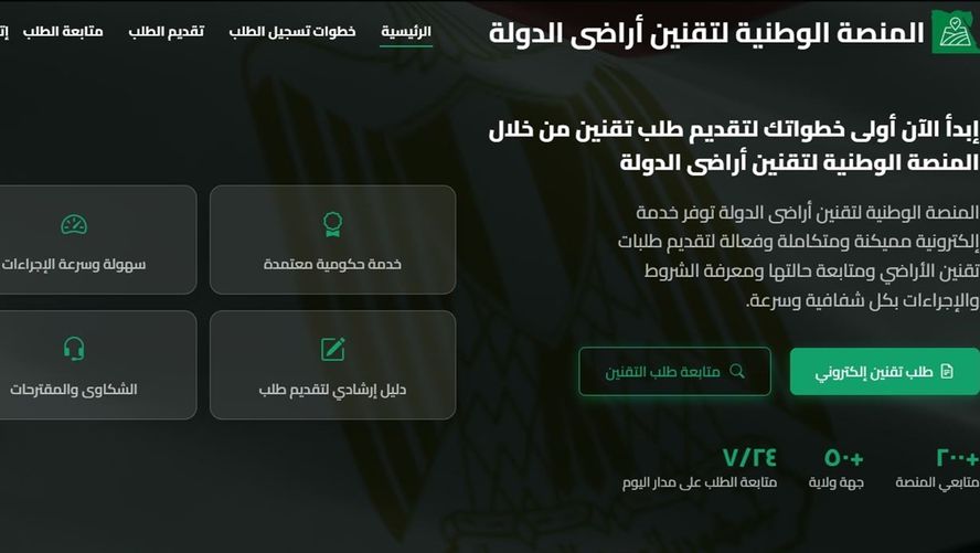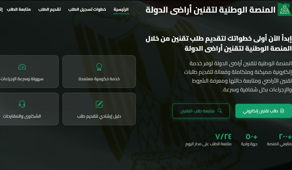 المنصة الوطنية لتقنين اراضى الدولة تتيح للمواطنين تقديم طلبات التقنين إلكترونيًا، ومتابعة جميع مراحل الإجراءات، بما في ذلك أعمال المعاينة، وتسعير الأراضي المطلوب تقنينها، وصولًا إلى إجراءات التعاقد النهائي، وذلك لمن تتوافر لديهم شروط التقنين.وفي هذا الإطار، كان مجلس الوزراء قد أصدر اللائحة التنفيذية للقانون رقم 168 لسنة 2025، والتي حددت شروط وإجراءات التقنين وآليات تقديم الطلبات، على أن تستمر فترة التقديم لمدة ستة أشهر فقط من تاريخ بدء العمل باللائحة.