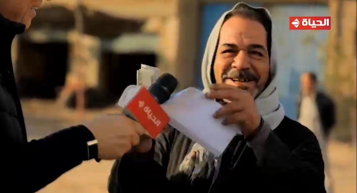 وخلال فقرة سيارة المفاجآت، التقى الليثي بسيدة ورجل يقفان على الطريق ويحملان كراتين. وقال الرجل إنه اسمه عادل رزق حنا، ويبيع صنادل وأحذية على مفارق الطريق، ويعيش في محافظة المنيا، ويجهز ابنة مخطوبته.