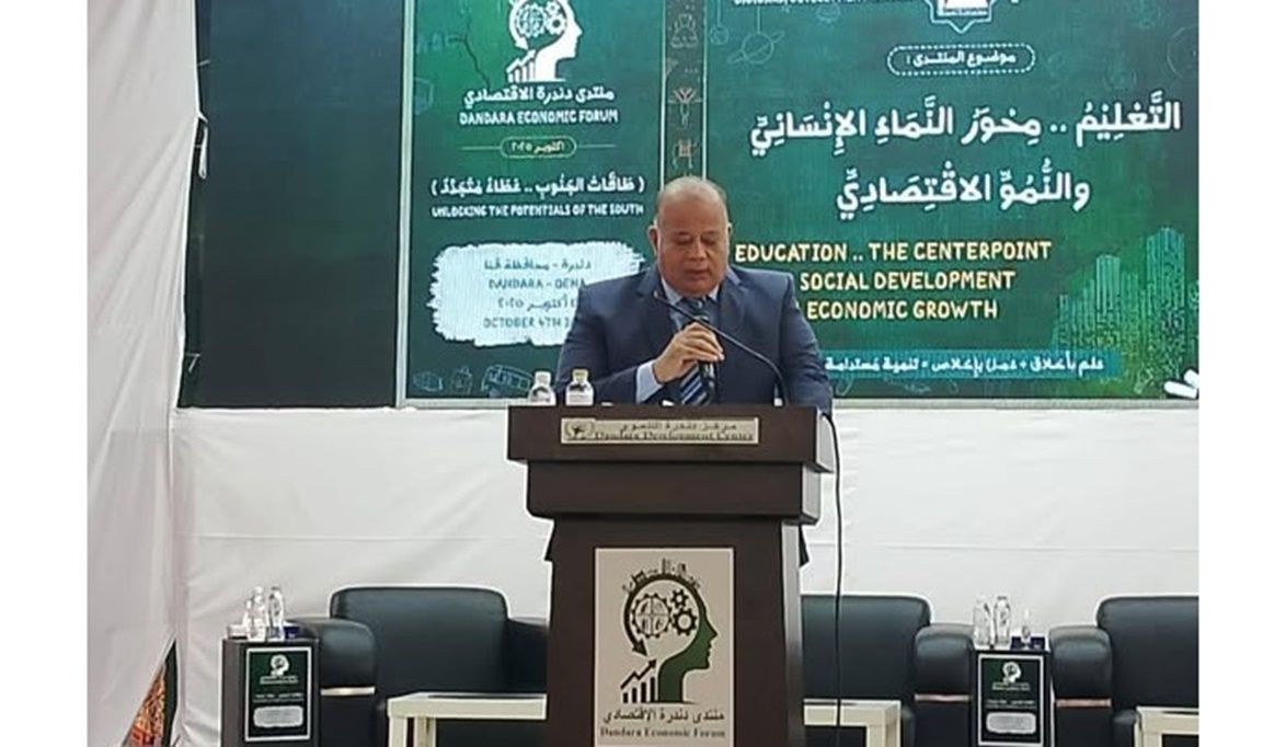 شارك اللواء أيمن السعيد، السكرتير العام المساعد لمحافظة قنا، في فعاليات افتتاح منتدى دندرة الاقتصادي لشهر أكتوبر 2025، الذي عُقد تحت شعار «طاقات الجنوب.. عطاء متجدد»، مستهدفًا جعل التعليم محورًا للنماء الإنساني والنمو الاقتصادي، وتعزيز مفاهيم البناء الإنساني كركيزة أساسية لتحقيق التنمية المستدامة.