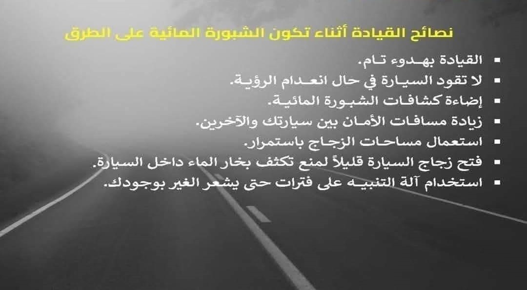 قدمت الهيئة مجموعة من الإرشادات المهمة لضمان السلامة أثناء القيادة في أوقات الشبورة، وتشمل: