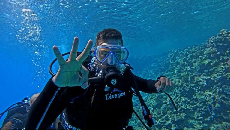 وشارك محمد كرم إلى جانب خمسة باحثين من فريق محميات البحر الأحمر وممثلي مشروع الغردقة الخضراء في غطسة رمزية داخل المحمية للتأكيد على أهمية حماية البيئة البحرية ونشر ثقافة الشمول في العمل البيئي.