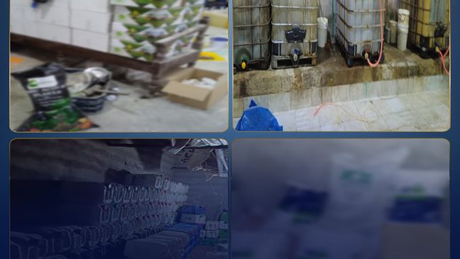 المصنع غير المرخص كان يستخدم مواد خام مجهولة المصدر لتصنيع الأسمدة والمخصبات الزراعية المغشوشة.تم ضبط 16 طن من المواد الخام ومنتج نهائي مغشوش جاهز للطرح في الأسواق.