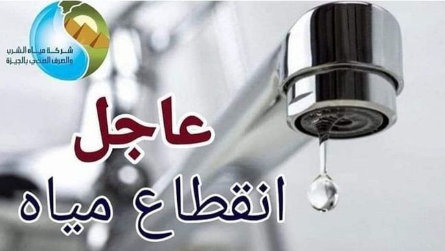 أعلنت شركة مياه الشرب والصرف الصحي بالجيزة عن تسرب مفاجئ بخط مياه رئيسي قطر 1000 مم، ما استدعى قطع المياه عن مناطق: