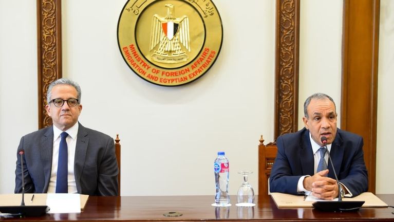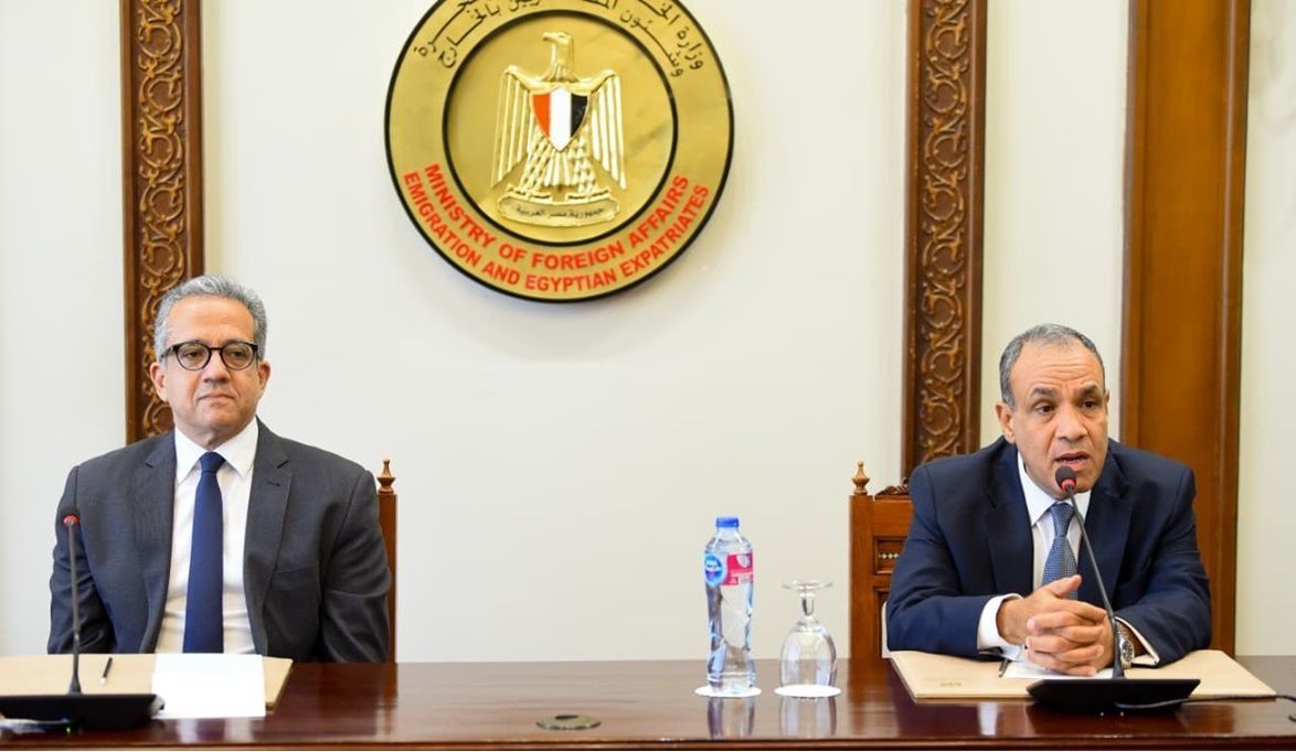 استقبل د. بدر عبد العاطي وزير الخارجية والهجرة وشئون المصريين بالخارج يوم الاحد ١٢ أكتوبر، الدكتور خالد العناني مدير عام منظمة اليونسكو المنتخب، في مقر الوزارة بحضور أعضاء السلك الدبلوماسي، وذلك فى اول زيارة له بعد انتخابه فى منصبه الجديد.