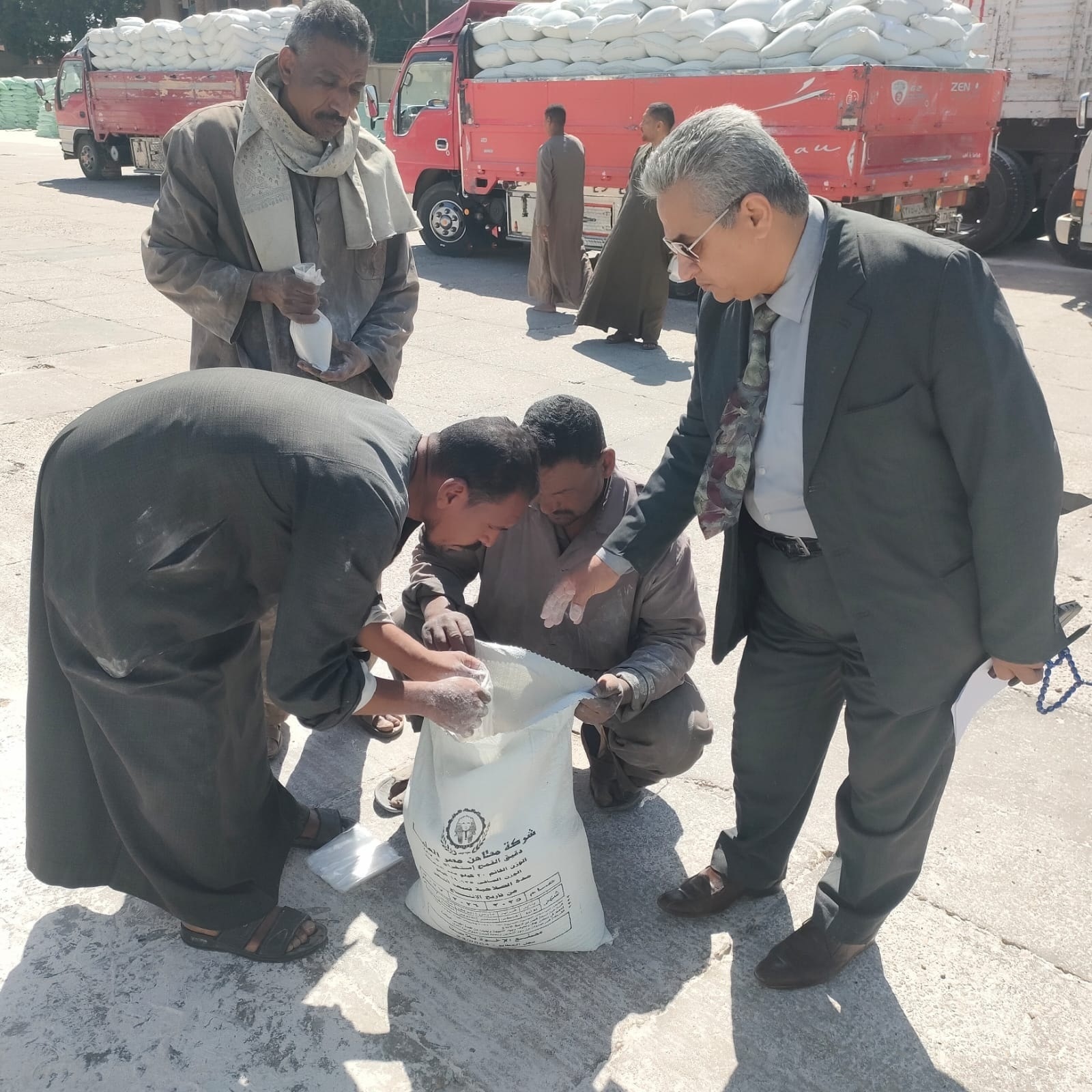 وفي إطار إحكام الرقابة التموينية، تم المرور على مطحن أرمنت وإجراء جشني دقيق على أوزان الدقيق المخصص للمخابز والمستودعات، للتأكد من الالتزام بالأوزان القانونية والمعايير المعتمدة، وضمان وصول الدعم لمستحقيه.