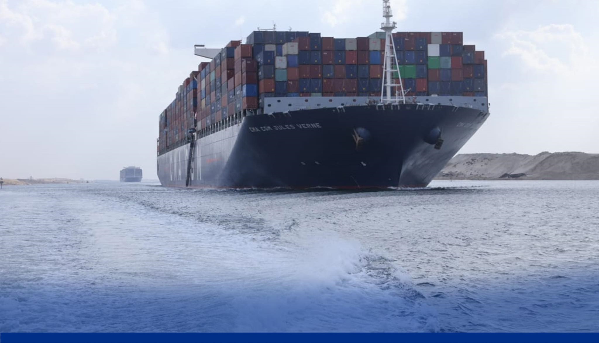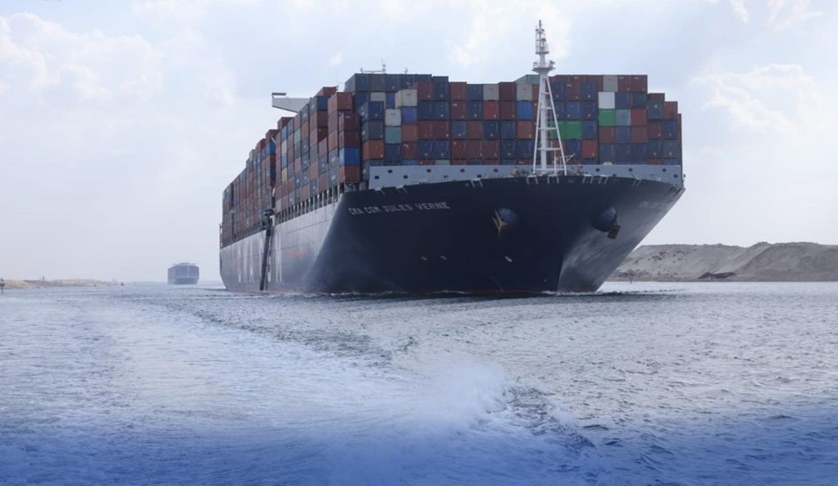 أعلن الفريق أسامة ربيع، رئيس هيئة قناة السويس، جاهزية القناة لاستقبال سفن الحاويات العملاقة، وذلك خلال تفقده حركة الملاحة بالقناة من على متن سفينة الحاويات العملاقة CMA CGM JULES VERNE في رحلتها البحرية عبر القناة ضمن قافلة الجنوب، قادمة من سنغافورة ومتجهة إلى لبنان، بعد عبورها بأمان من منطقة البحر الأحمر وباب المندب.