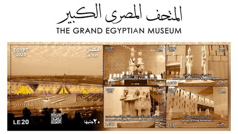 أصدرت وزارة الاتصالات وتكنولوجيا المعلومات مجموعة طوابع تذكارية جديدة مزودة بتقنية الـ "QR Code" من خلال البريد المصرى لتوثيق الحدث التاريخى لافتتاح المتحف المصرى الكبير الذى يعد أحد أهم وأضخم المشروعات الثقافية والحضارية فى القرن الحادى والعشرين، ويمثل أيقونة جديدة تضاف إلى سجل إنجازات الدولة فى الحفاظ على تراثها الإنسانى العريق والترويج له عالميًا.
