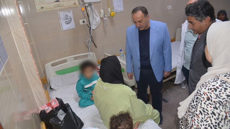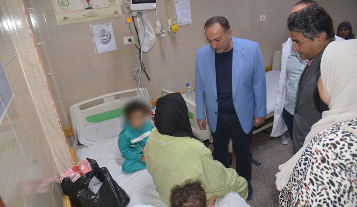 محافظ أسيوط يزور الأطفال المصابين في حادث سقوط تروسيكل بمنقباد ويطمئن على حالتهم الصحية