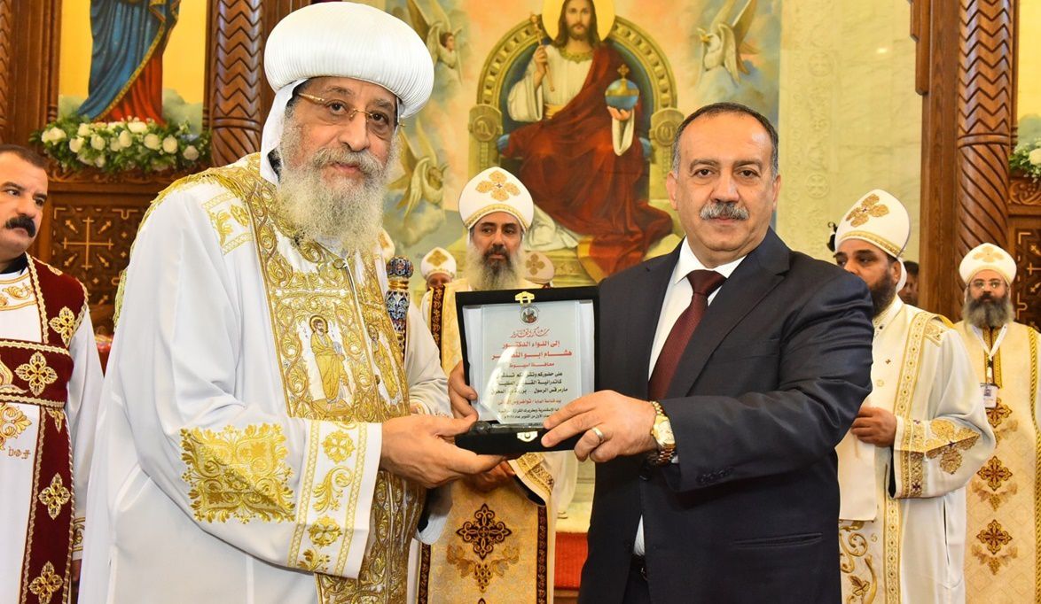 وفي ختام الفاعلية، قدم محافظ أسيوط أيقونة السيدة العذراء إلى قداسة البابا تقديرًا له، فيما أهدى قداسة البابا درع الكنيسة إلى المحافظ ونائبه تعبيرًا عن التقدير المتبادل.