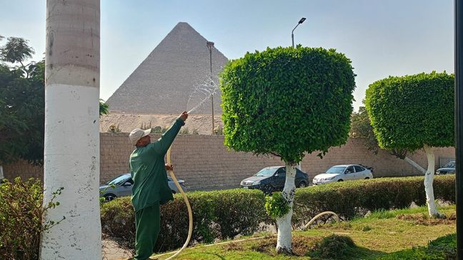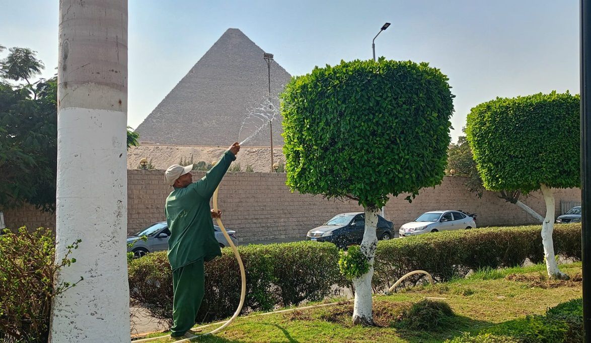 واطّلع المهندس عادل النجار محافظ الجيزة على أعمال الصيانة الشاملة للمسطحات الخضراء والمزروعات والأشجار بمحيط المتحف الكبير وفنادق الإقامة، والطرق والمسارات المؤدية إليه إلى جانب أعمال النظافة اليومية ودهان الأرصفة والبلدورات وتنسيق المشهد العام بما يبرز القيمة الجمالية للمنطقة كأحد أهم المقاصد السياحية العالمية.